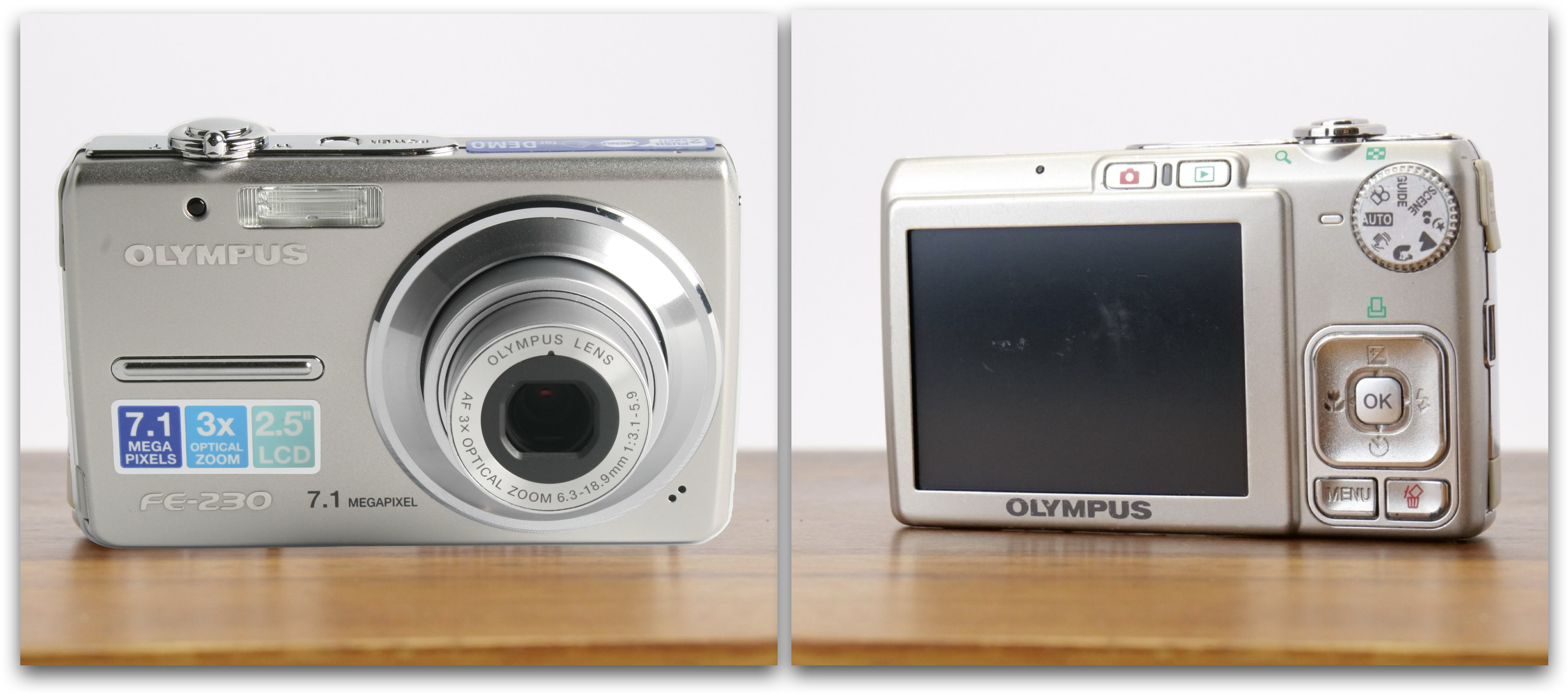 Olympus FE-230, a 7.1 megapixels little thing (quite generous back then — not very much dazzling these days!).